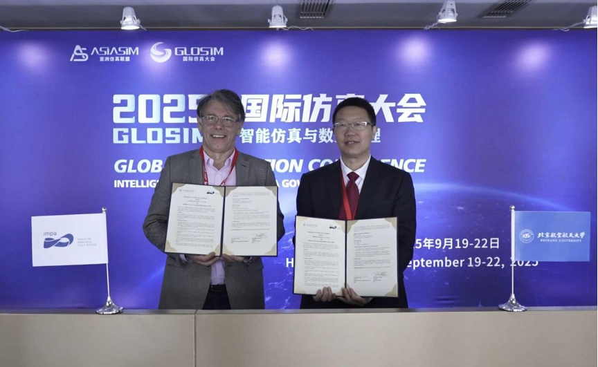来访期间,Marcelo Viana院士在2025国际仿真大会上代表巴西国家理论与应用数学研究所与北航就学生互访签署合作协议。中法数学实验室在本次合作协议签署中起到了积极的促进作用。